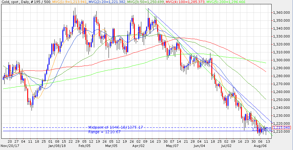 A rebound above the 20-day moving average (1277.21 today) is needed to ease short term pressure on the downside. Above that, the more important 1300.00/1303.29 level would be back in play.